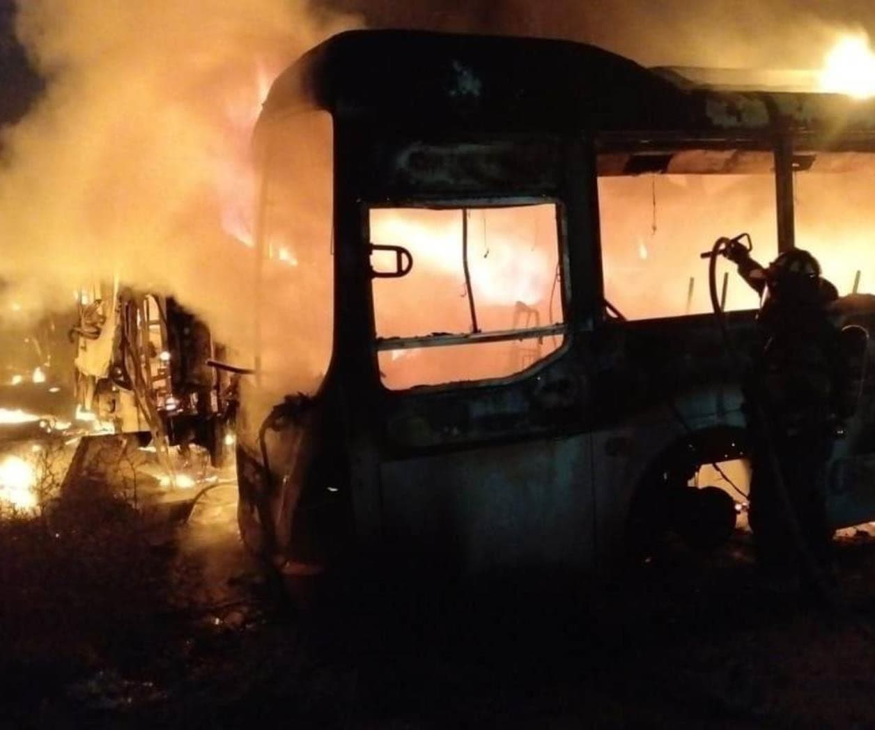 El fuego consumió cuatro camiones Hyundai y tres Marcopolo.