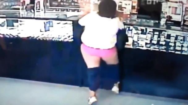 VIDEO: Mujer asalta joyería con una gran roca y enseñando los calzones