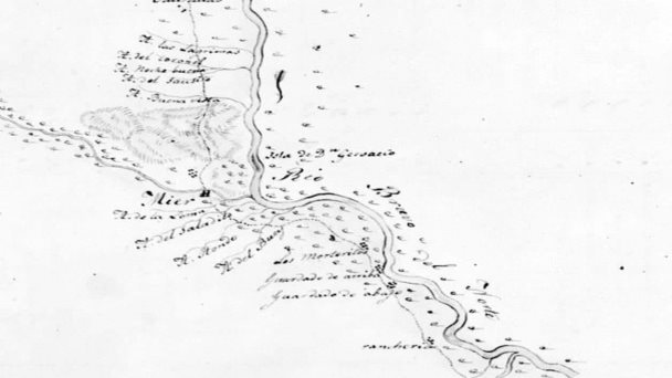 Mapa de Jean Louis Berlandier del camino entre Camargo y Reynosa (circa 1830). Biblioteca Bienecke de la Universidad de Yale.