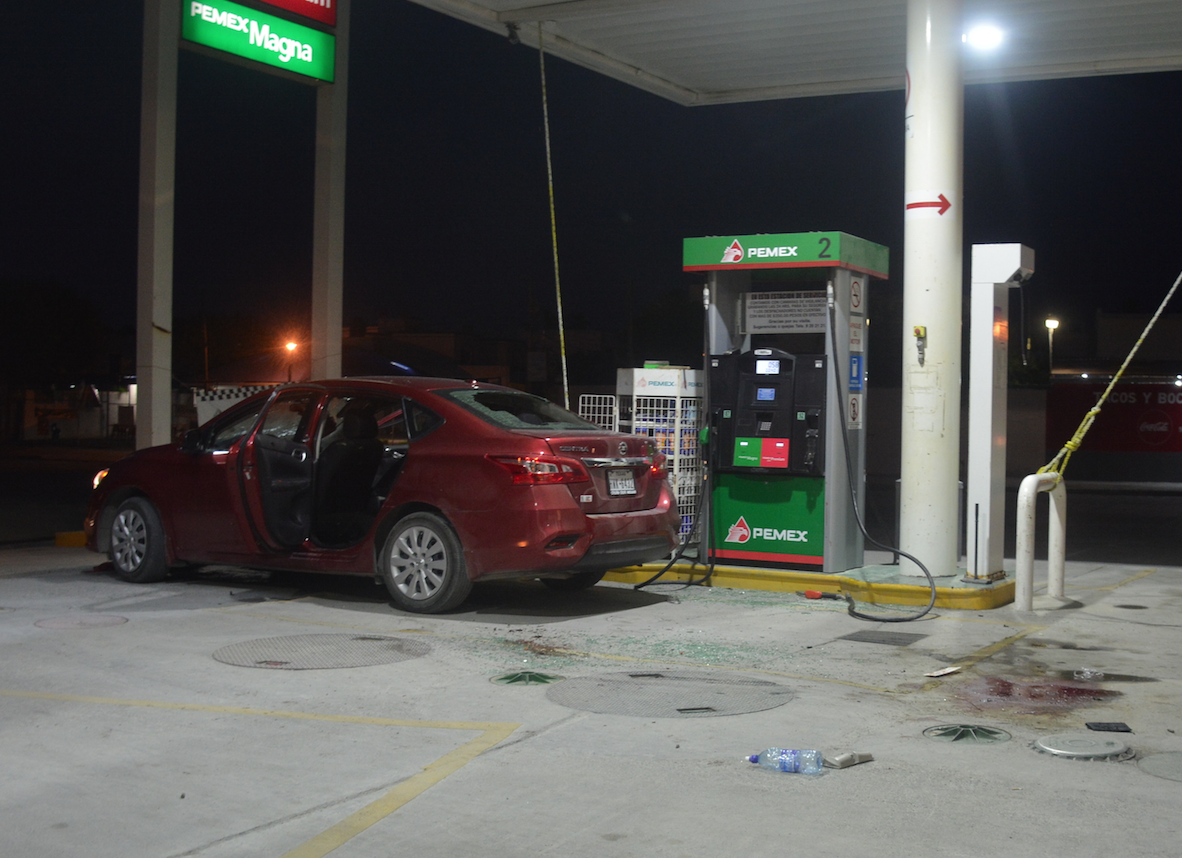 Minutos más tarde, en una gasolinera ubicada en el cruce de la avenida Río San Juan con el bulevar Las Fuentes, fueron ametrallados los cuatro tripulantes de un automóvil Nissan Sentra.