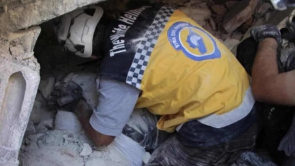 En su cuenta de Twitter, la Defensa Civil, que opera en las zonas fuera del control del Gobierno sirio, aseguró que continúa la búsqueda de supervivientes y cadáveres. Asimismo, los cascos blancos divulgaron a través de Internet fotografías de sus efectivos tratando de retirar escombros del edificio destruido usando una grúa y una excavadora.
