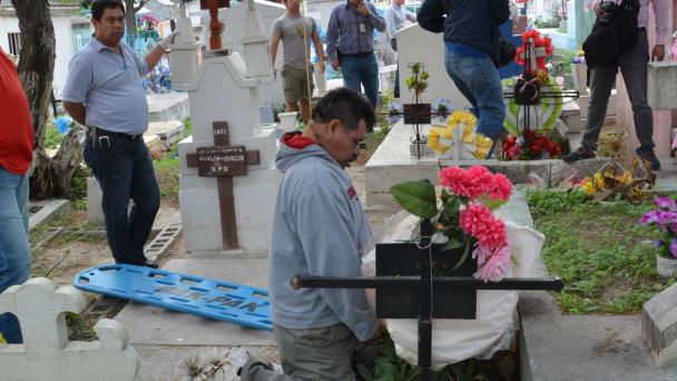 Los hechos fueron reportados a la Policía Estatal Acreditable a las 15:30 horas de ayer por personal del Panteón Municipal San Pedro, acudiendo al lugar agentes federales del Grupo de Homicidios y técnicos de la Unidad de Servicios Periciales, así como personal de la Agencia Primera del Ministerio Público.