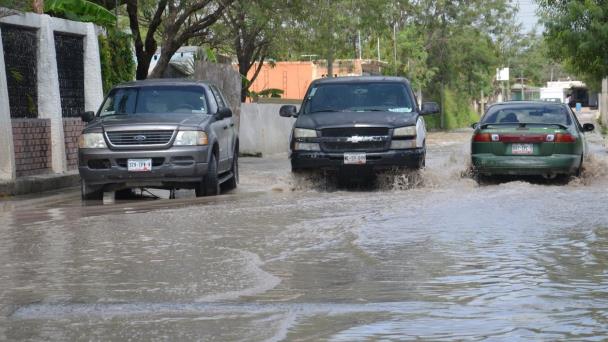 Obstaculizan encharcamientos tránsito de personas y vehículos por calles inundadas