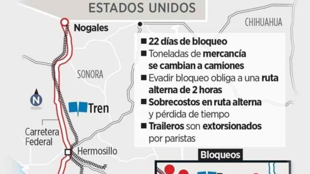 El bloqueo de las vías de ferrocarril está en la comunidad de Vícam, entre Ciudad Obregón y Guaymas. La AMF señaló que la vía ha estado bloqueada en ese punto 22 días de las últimas cuatro semanas.