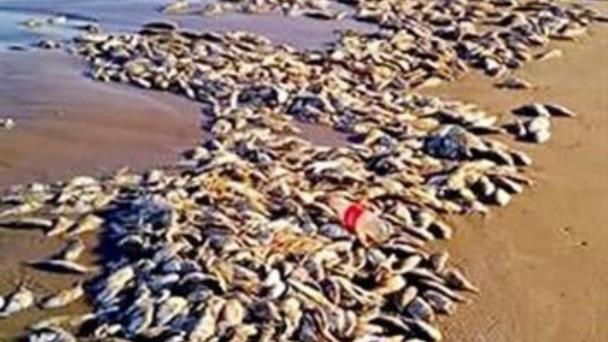 Matamoros, Mexico.- Miles de peces aparecieron muertos en la playa Costa Azul a causa de la marea roja que afecta la zona desde el 17 de septiembre.