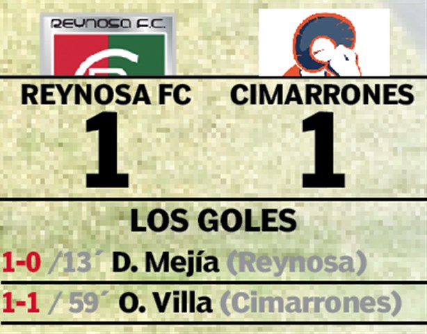 “La Roja” dejó escapar dos puntos y perdió el liderato del grupo, pero al menos mantuvo el invicto como local. “Dagol” Mejía puso al frente a los reynosenses y marcó su cuarto tanto del torneo para unirse a Ernesto González, como los goleadores del equipo. El empate llegó al minuto 59 de tiempo corrido por la vía de la pena máxima que hizo efectiva Oscar Villa.