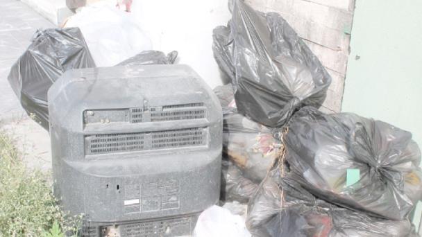 TIRADOS. Ya se puede observar televisores antiguos tirados en los contenedores de Limpieza Pública.