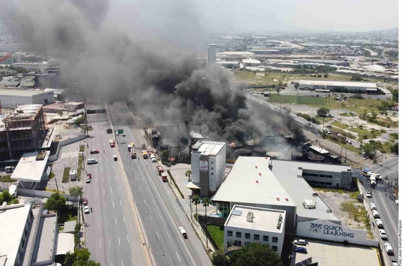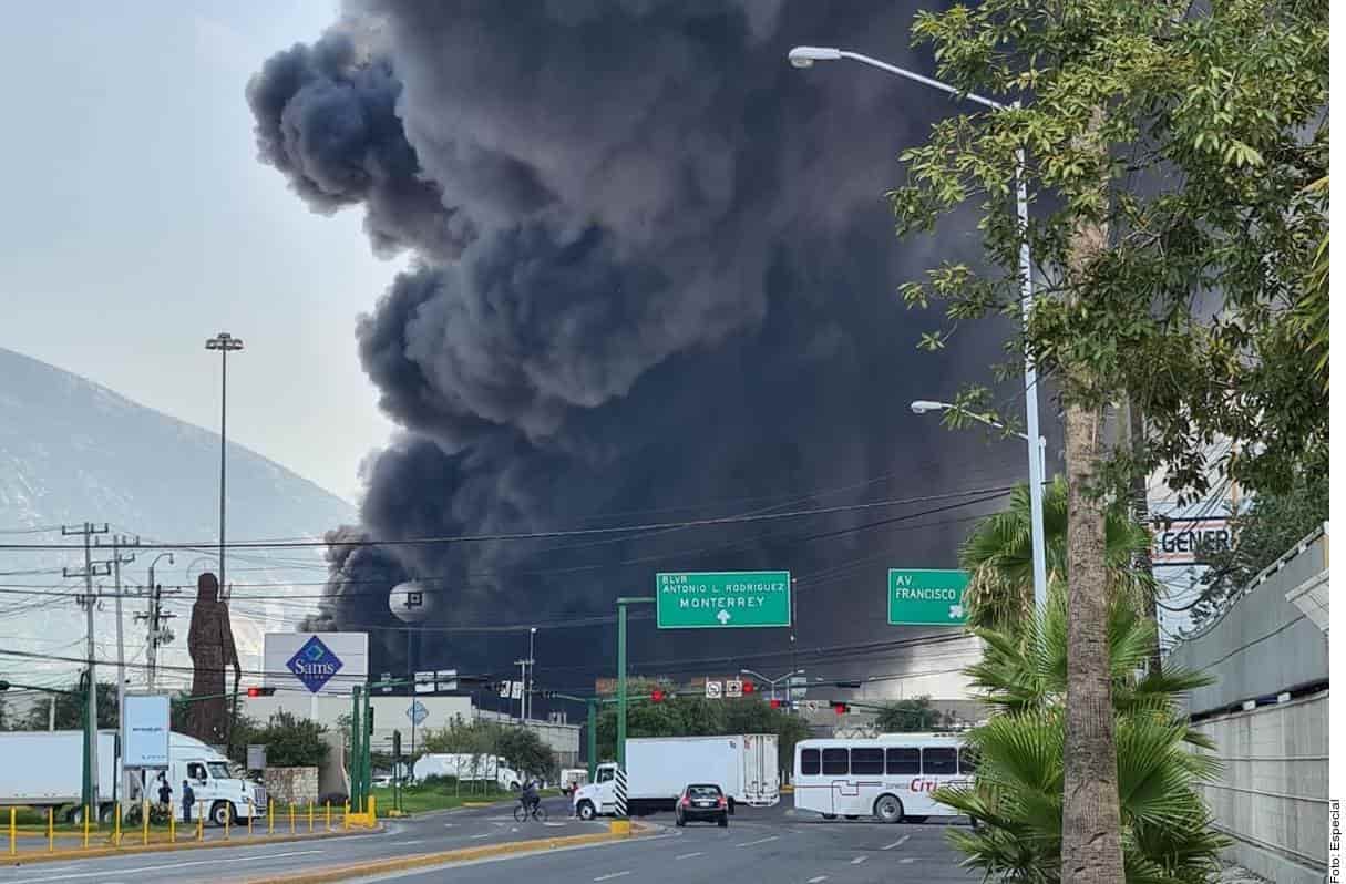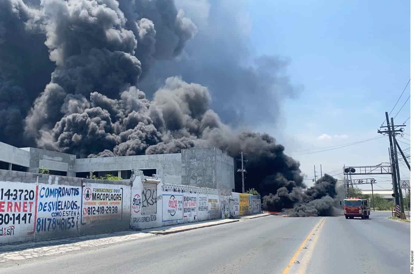 Monterrey, NL.- Un incendio de gran magnitud se registra esta tarde en las instalaciones de la empresa Protexa, en Santa Catarina.