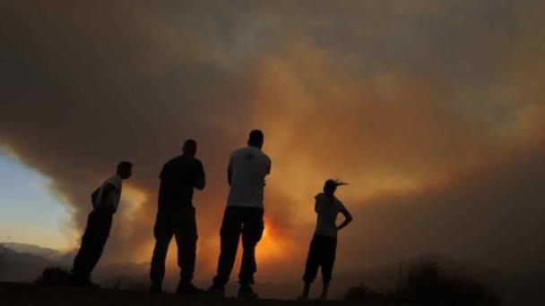Vecinos de la región de Larnaca miran el incendio.