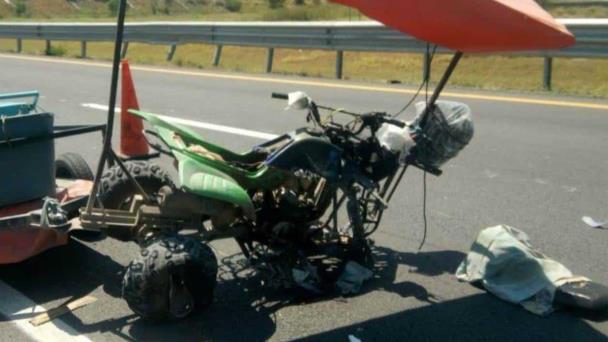 Los hechos se suscitaron a las 11:45 horas, cuando el modesto vendedor quien circulaba en el mismo sentido a bordo de una cuatrimoto color verde con negro, con la cual remolcaba un carreón de paletas y helados, se desplazaba por el carril derecho, pero a la altura de la brecha 112, invade el carril contiguo, siendo impactado por el costado izquierdo de una camioneta Ford color gris, con placas fronterizas ZXZ-444-R, en la cual viajaba una familia de Nuevo Progreso.