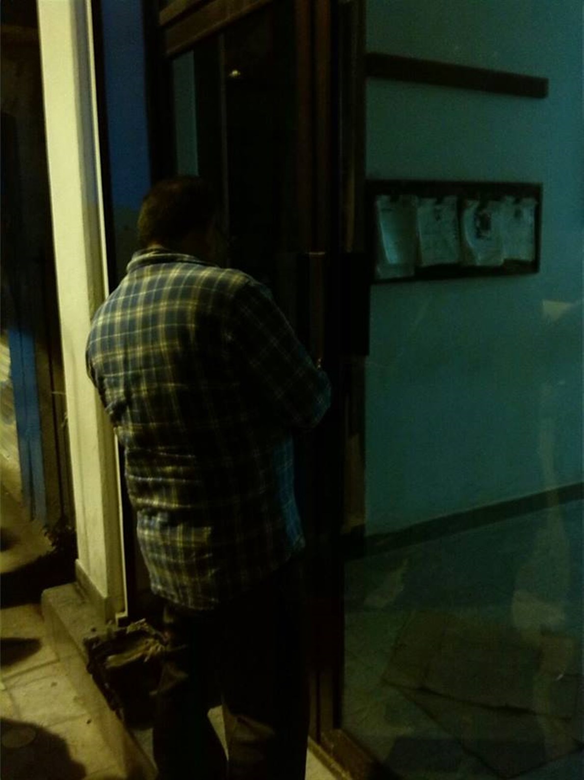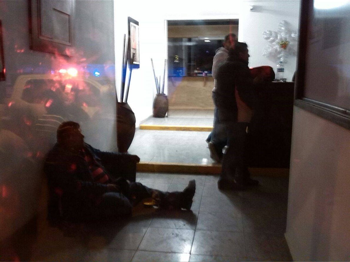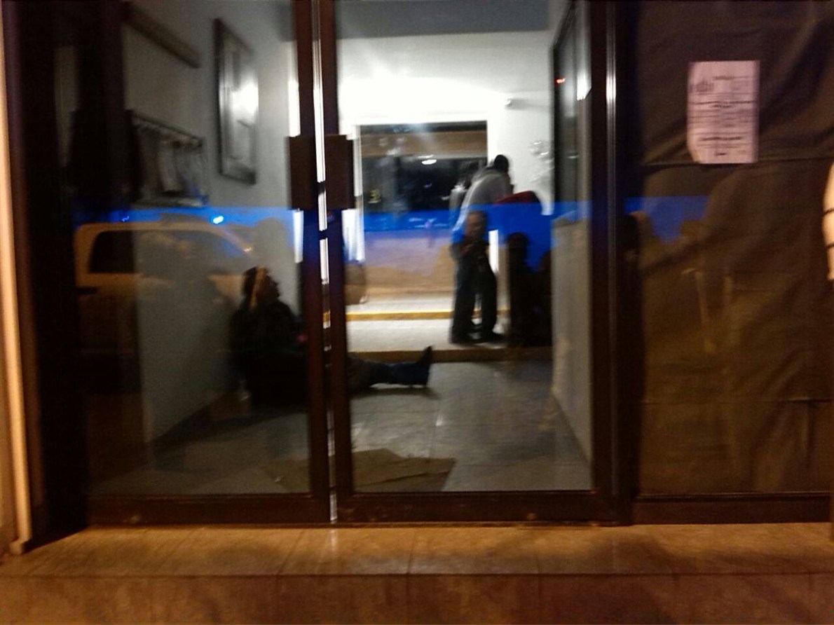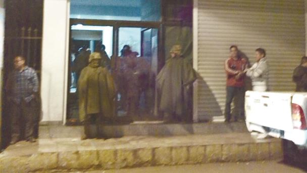 Los empleados permanecieron en el interior por espacio de tres horas. A través de la puerta de vidrio se lograban ver sentados en el piso en espera de que se diera la instrucción de ingreso a las instalaciones.