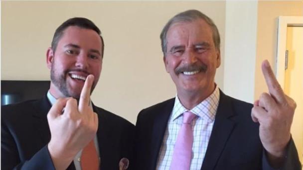 La imagen en la que Fox hace este gesto, supuestamente dedicado al magnate, fue publicada originalmente por Ben Mathis, conductor del podcast ‘KickAss Politics’, con el mensaje: “Vicente Fox y yo tenemos un mensaje para Donald Trump. Escuchen un adelanto de su entrevista más controversial hasta ahora, realizada sólo un día antes de que ofreciera disculpas a Trump en la entrevista a Breitbart”.
