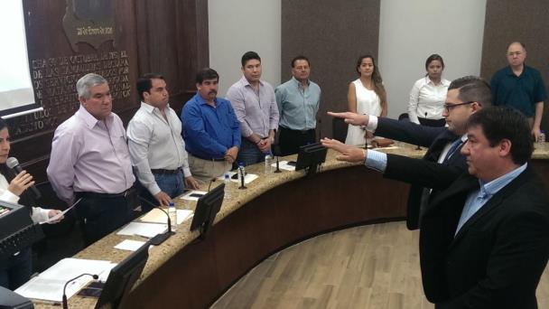 PROTESTA. Momento en que los nuevos toman protesta ante el Cabildo de Matamoros.