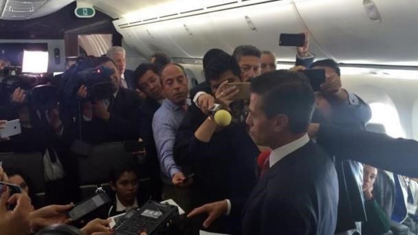 En el estreno del avión presidencial, Enrique Peña Nieto bromeó sobre los rumores de los lujos que incluye y defendió su función oficial. Foto: Érika Hernández