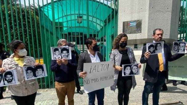 Este martes, el secretario nacional de Acción Juvenil y presidente de la JODCA, Alan Ávila; y la secretaria de Asuntos Internacionales del PAN, Mariana Gómez del Campo; así como René Bolio acudieron a la calle de Presidente Masaryk 554, en Polanco, sede cubana en México para hacer una protesta.
