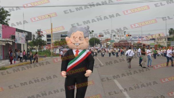 “AMLO” fue defendido por sus seguidores que encararon a Portillo Martinez,. Finalmente se encaminó rumbo al puente vehicular por arriba de la calle Bravo, y desde ahí presenció el resto del desfile.