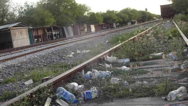 TIRAN. Toda clase de desechos se observan en las vías del ferrocarril.
