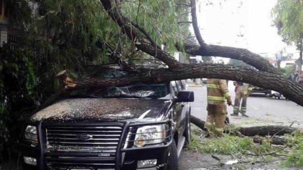 Cd. de México.- Un árbol que se encontraba en el camellón de Playa Encantada, en la Colonia Militar Marte, se desprendió desde la raíz y cayó sobre una camioneta sin que resultaran personas lesionadas, en la Delegación Iztacalco.