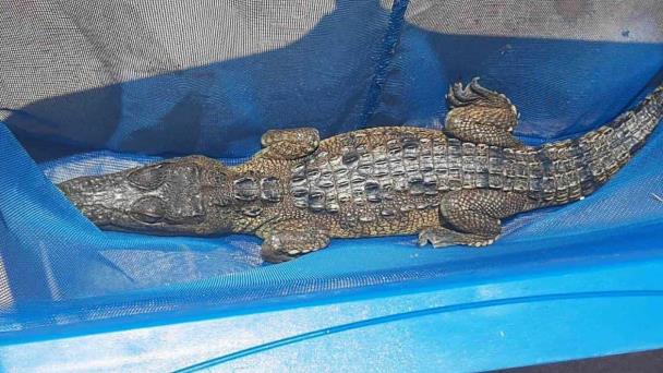 Se trata de un cocodrilo de al menos un metro de longitud, mismo que se desconoció cómo es que llegó hasta la alberca.