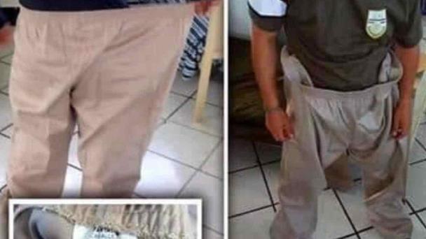 En las imágenes se observa que algunos agentes tienen que usar cordones o lazos para amarrarse el pantalón a la cintura, a pesar de que éste tiene resorte, pues les queda extra grande.