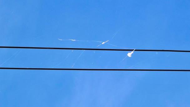 Las delgadas telarañas voladoras miden entre 45 centímetros y varios metros de largo y han estado moviéndose sin rumbo por el cielo, enredándose en postes, alambres de alta tensión, cercas y árboles.