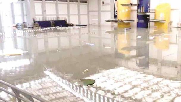 El agua que entró a la instalación del centro acuático superó los niveles de la fosa de clavados, la alberca de 25 metros, la de 50 o curso largo, oficinas de entrenadores y personal administrativo quedando como un lago artificial.