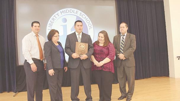RECONOCIMIENTO. El director de Liberty Middle School, Alfredo Carrillo, es galardonado por su trabajo.