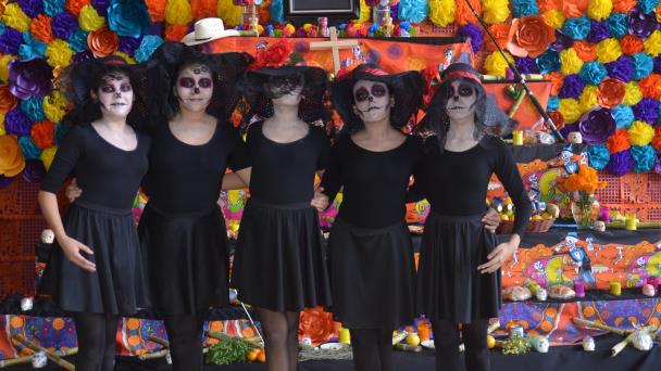 nEN PUNTAS. Alumnas de la secundaria presentaron un bello número artístico.nCANTANTES. Frida Emilia Montelogo y Jorge Luis González.nXANTOLO. Baile propio de las festividades de Todos Santos.nMAJESTUOSO ALTAR. Celebran Día de Muertos en la Secundaria General profesor Gabriel Saldivar Y Silva, aquí familiares del homenajeado, alumnos participantes acompañados de la directora de la institución la profesora María Dolores López García.