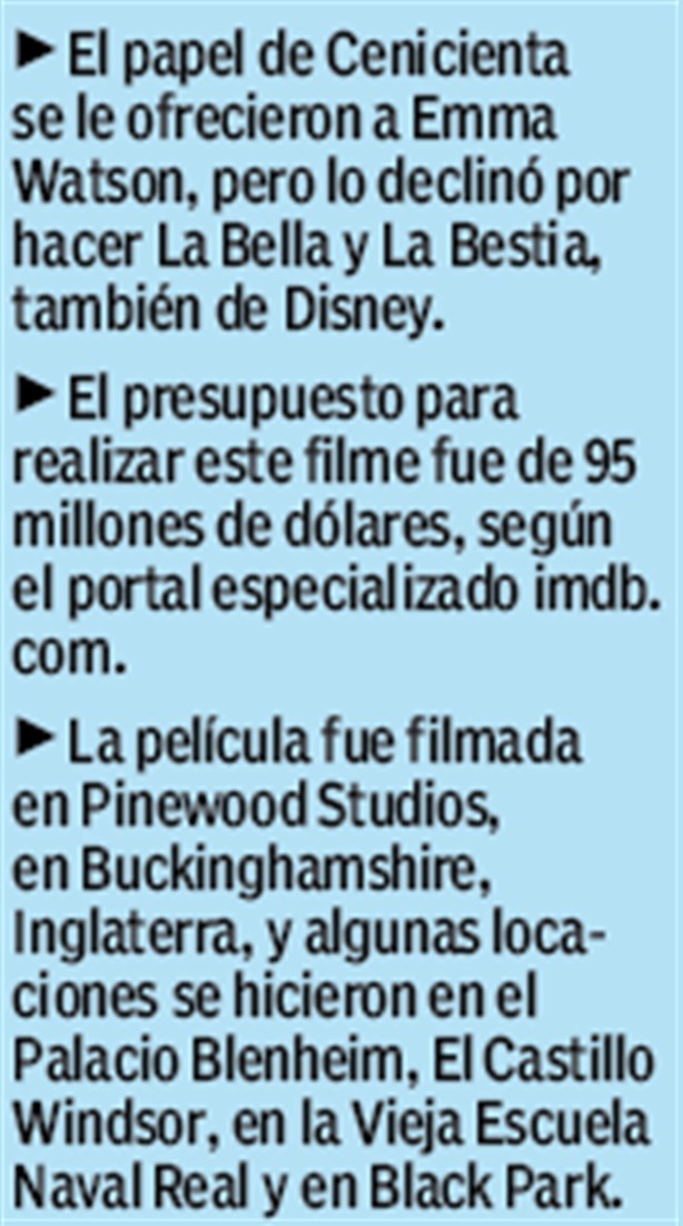 En este largometraje, con un costo de 95 millones de dólares, y en el que Cate Blanchett personifica a la malvada “madrastra” o Lady Tremaine, destaca el tratamiento visual y los matices de los personajes.