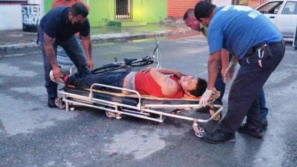 Al llegar al lugar, los paramédicos lo encontraron tirado en el pavimento con varios golpes sin que pudiera levantarse, por lo que lo llevaron de inmediato al Hospital General para su valoración médica.