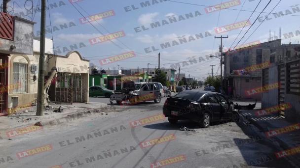 Tripulantes de una camioneta escaparon luego de chocar contra un vehículo en el que viajaba una familia, en la calle Margaritas con Jacarandas en la colonia Villa Florida, sector A.
