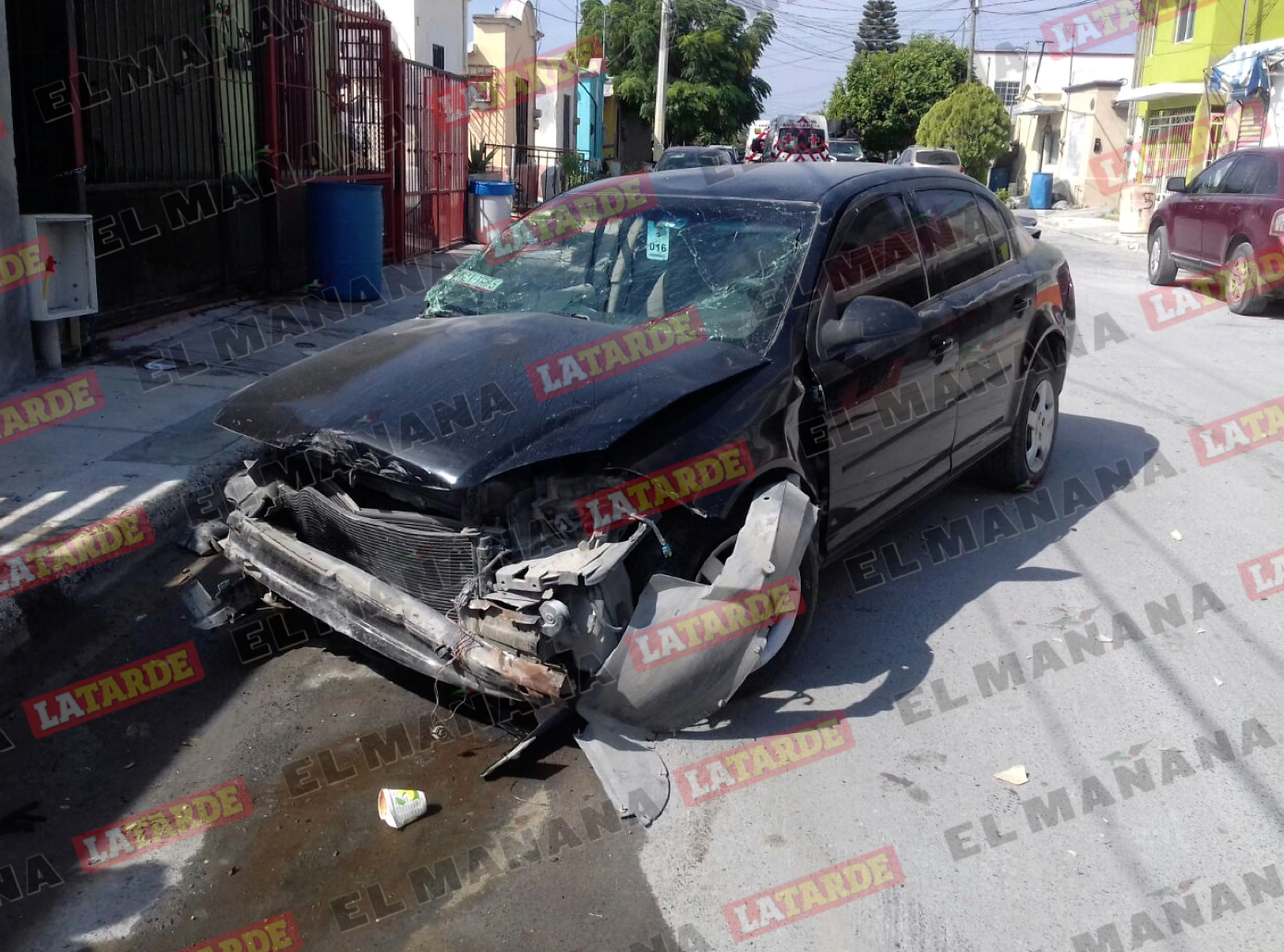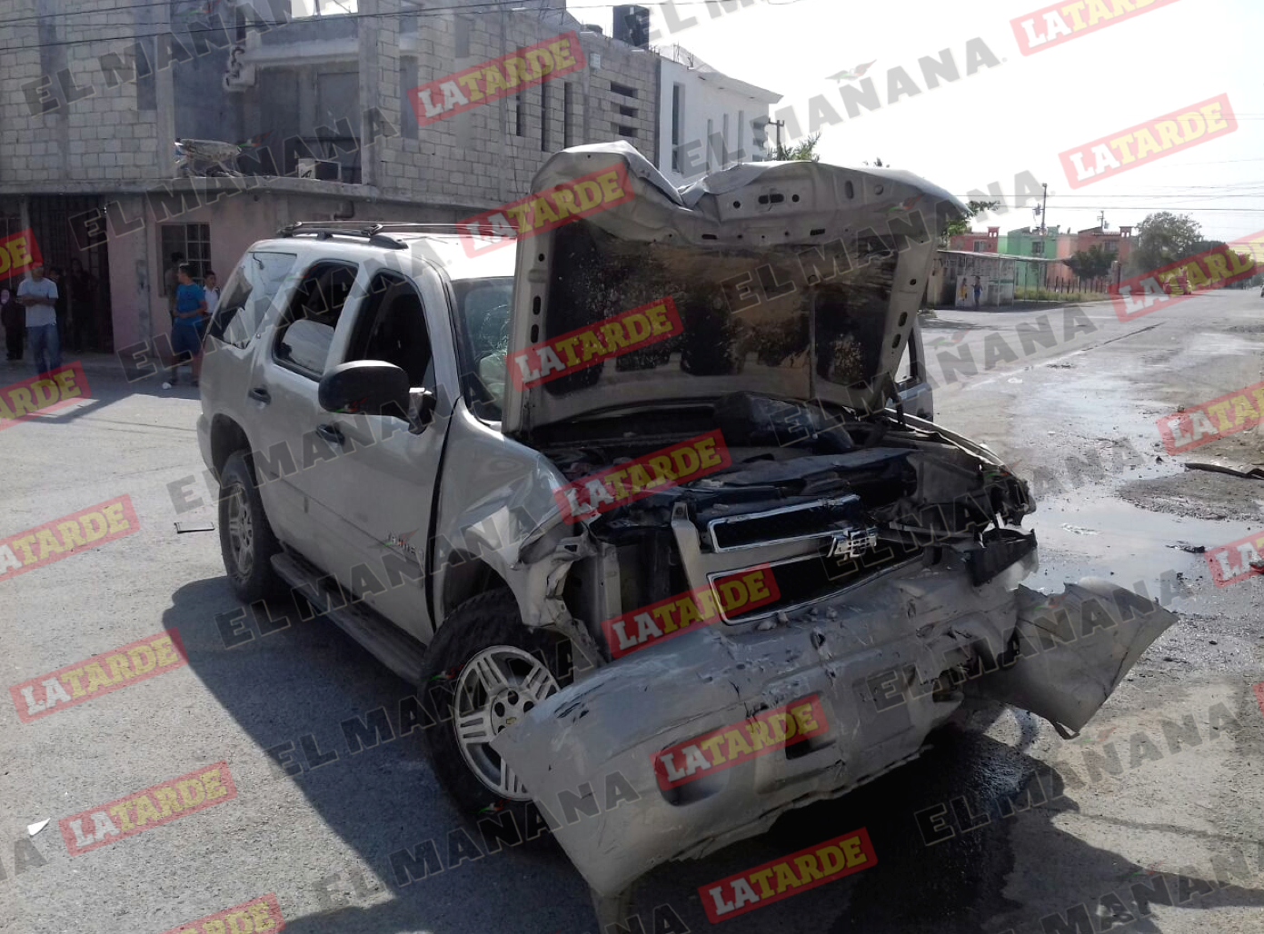 Tripulantes de una camioneta escaparon luego de chocar contra un vehículo en el que viajaba una familia, en la calle Margaritas con Jacarandas en la colonia Villa Florida, sector A.