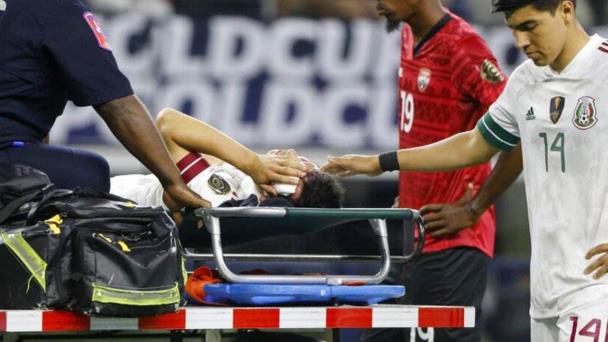 El sábado, durante el partido entre México y Trinidad y Tobago, sufrió un golpe en la ceja izquierda tras chocar con la rodilla del portero de trinitario, Marvin Philip.