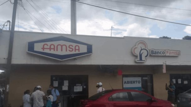 Empleados del establecimiento en donde también se cuenta con el Banco Famsa, dijeron desconocer la situación y que sólo accedieron a desalojar el local a petición del propietario.