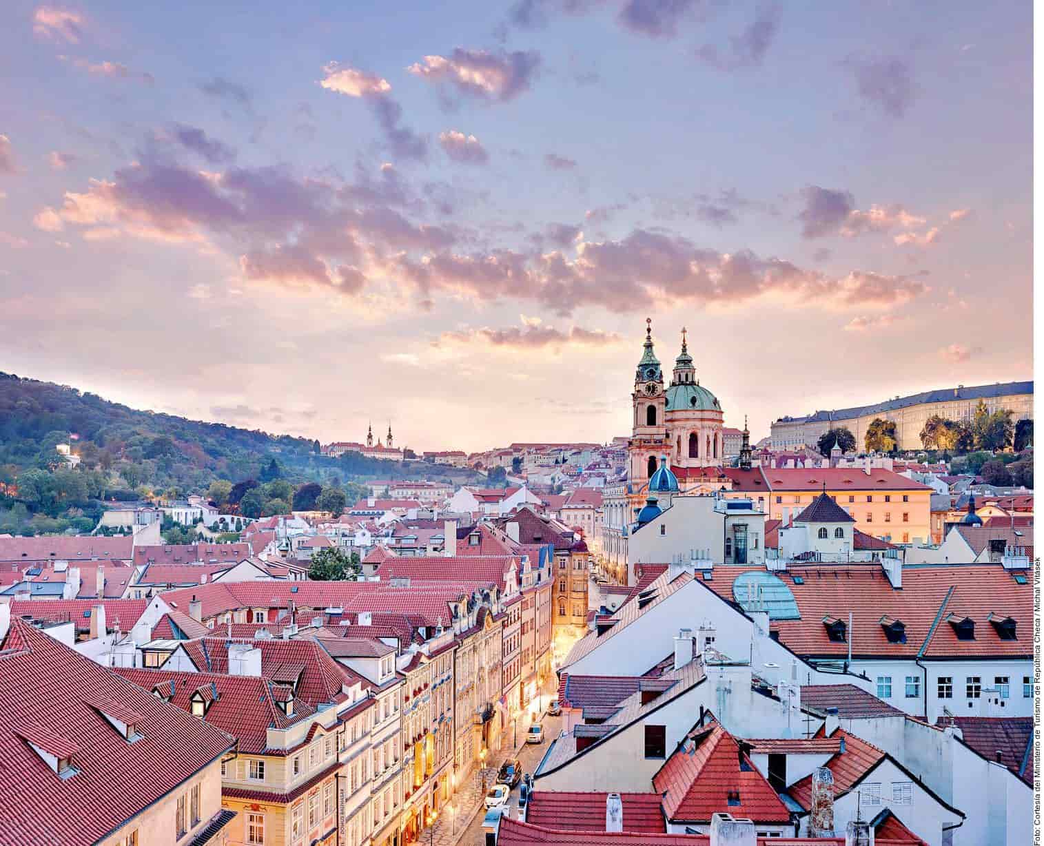 La majestuosa belleza gótica de la Catedral de San Bartolomé, ubicada en la Plaza de la República, es enmarcada por las fachadas barrocas, clásicas y renacentistas todas pintadas de colores pastel en esta bella ciudad.