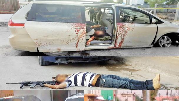 A las 19:20 horas se reportó que en las calles Tula y Soto la Marina de la colonia Del Carmen, fueron abatidos dos delincuentes que se transportaban en una vagoneta Toyota color gris, de reciente modelo, placas de Texas.