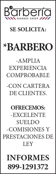 (logo) se solicita: *barbero -amplia experiencia comprobable -con cartera de clientes. ofrecemos: -excelente sueldo -comisiones y prestaciones de ley informes; 899-1291372