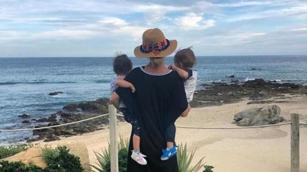 "Felices fiestas. Que tengan la fortuna de pasar estos días con sus más queridos. Paz y amor para todos", escribió Ludwika en la imagen donde está de espaldas con sus gemelos, ella vestida de negro con un sombrero y ellos de tenis y playeras, mirando al mar.