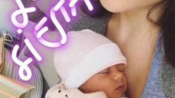 EN LAS REDES. Zuria Vega durmiendo en su regazo a la pequeña Lúa.