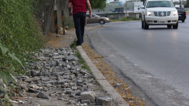 En la calle Emilio Portes Gil de la colonia Del Prado, los transeúntes tiene dificultades para transitar por la acera norte, ya que en la última parte de la acera norte, al llegar a la esquina del Libramiento Luis Echeverría Álvarez, fue depositado escombro.
