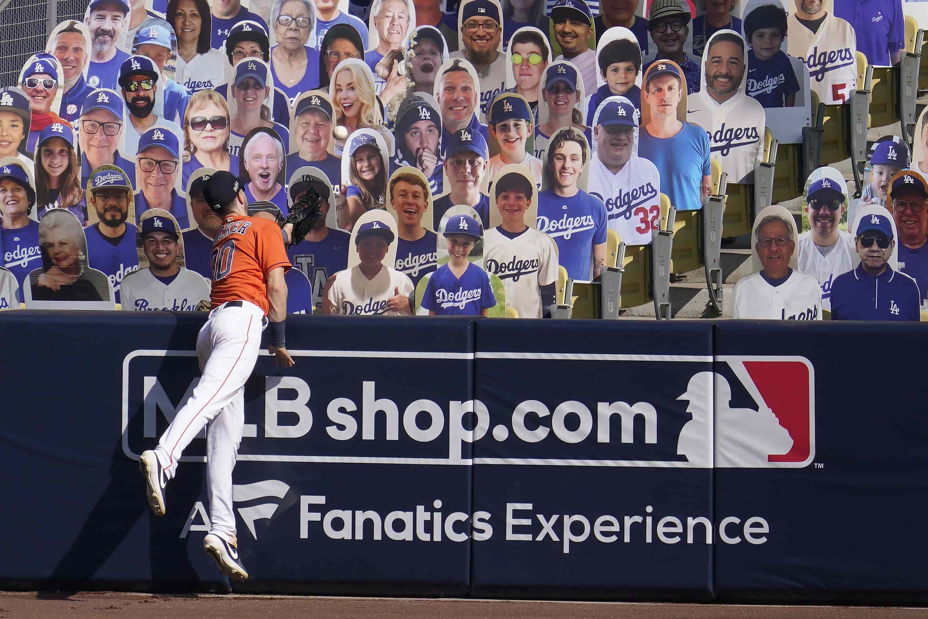 El jardinero derecho Kyle Tucker persiguió la bola hasta que se quedó sin espacio ante la barda de poca altura.