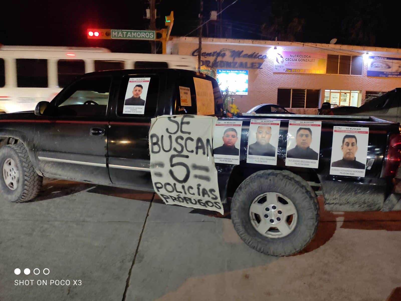 La protesta inició por la tarde-noche en la brecha 109, en el sitio en donde cayó abatido Daniel, para de ahí trasladarse los familiares al cruce de avenida Madero con Matamoros, en el primer cuadro de la ciudad, para colocar consignas en las unidades en que se trasladaban.