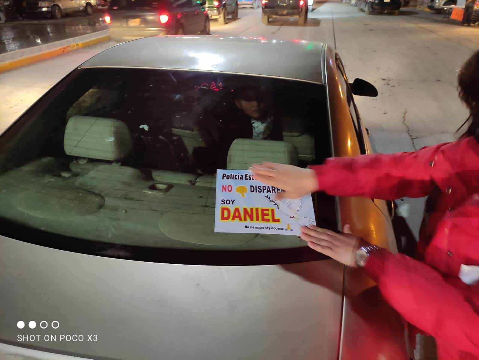 En esa céntrica intersección, los padres de Daniel, colocaron calcomanías a los vehículos que por ahí circulaban en las cuales se aludía a la imagen del joven inmolado y en donde se exigía justicia.