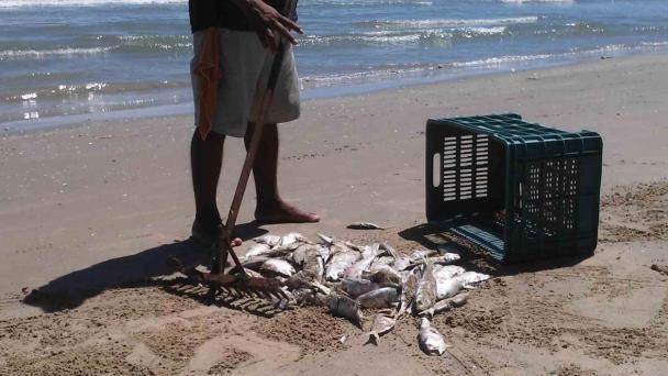 >Lo que sí informó es que se están realizando labores de limpieza en la orilla de la playa para retirar los peces y evitar que despidan olores fétidos.