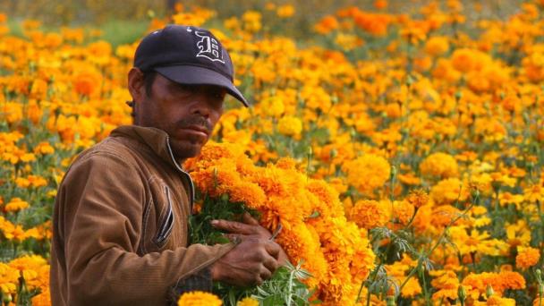 La flor de cempasúchil (“cempoaxóchitl” en náhuatl) es conocida como la flor de los 20 pétalos, y se cree que su uso en los altares de Día de Muertos es una herencia de los rituales prehispánicos que se realizaban en el pueblo de Malinalco, Estado de México.