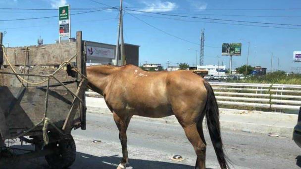 Un carretonero jala a otro caballo, el cual no lleva bolsa para sus desechos, por lo que en el camino va dejando la suciedad en plena calle, aunque es responsabilidad del propietario, no hace caso al reglamento local.