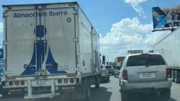Invaden tráilers todos los carriles de la carretera Río Bravo-Reynosa, impidiendo el libre trafico.