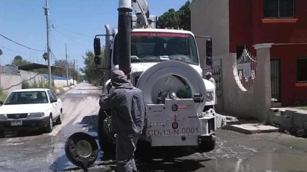 En atención al llamado de los ciudadanos o bien como parte de las propias labores de mantenimiento o correctivas, las cuadrillas de limpieza y Vactor de esta dependencia del agua y alcantarillado, dan servicio a las líneas generales de drenaje y pozos de visita, como lo fue en el Fraccionamiento Reynosa.