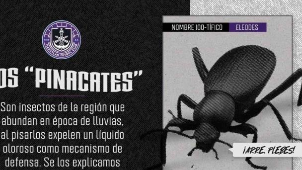 “Los ‘pinacates’. Son insectos de la región que abundan en época de lluvias, al pisarlos expelen un líquido oloroso como mecanismo de defensa. Se los explicamos para que ahora hagan memes de eso”, dice la publicación por @MazatlanFC, que es acompañada por una imagen del pequeño insecto.