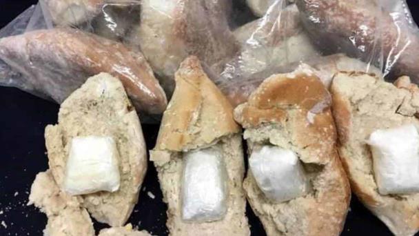 La PF encontró que cuatro de los bolillos estaban rellenos con pequeños envoltorios con la droga, que suman un total de 120 gramos.